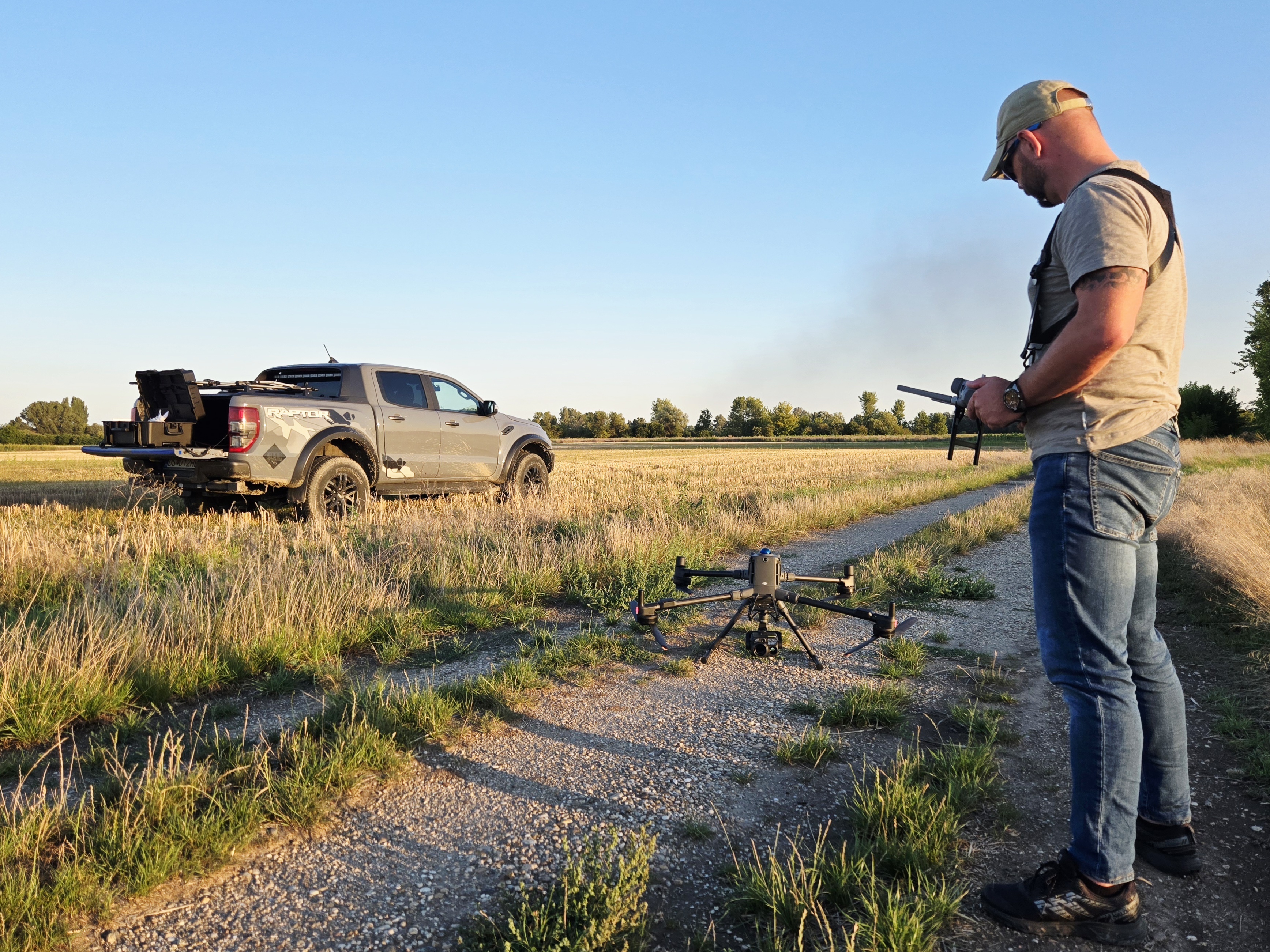 Náš systém pozostáva z dronu DJI Matrice 400, záznamového zariadenia DJI Zenmuse H30T, káblového (tether) systému a výkonných napájacích zariadení, čo nám umožňuje vykonávať nepretržité - až 24 hodinové dopravné prieskumy.